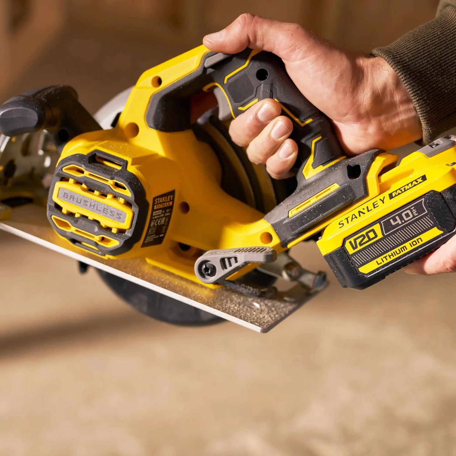 La scie circulaire Stanley SFMCS550M2K-QW La batterie 20V 4Ah est équipée d'un moteur sans balais pour garantir de meilleures performances et une plus grande efficacité.