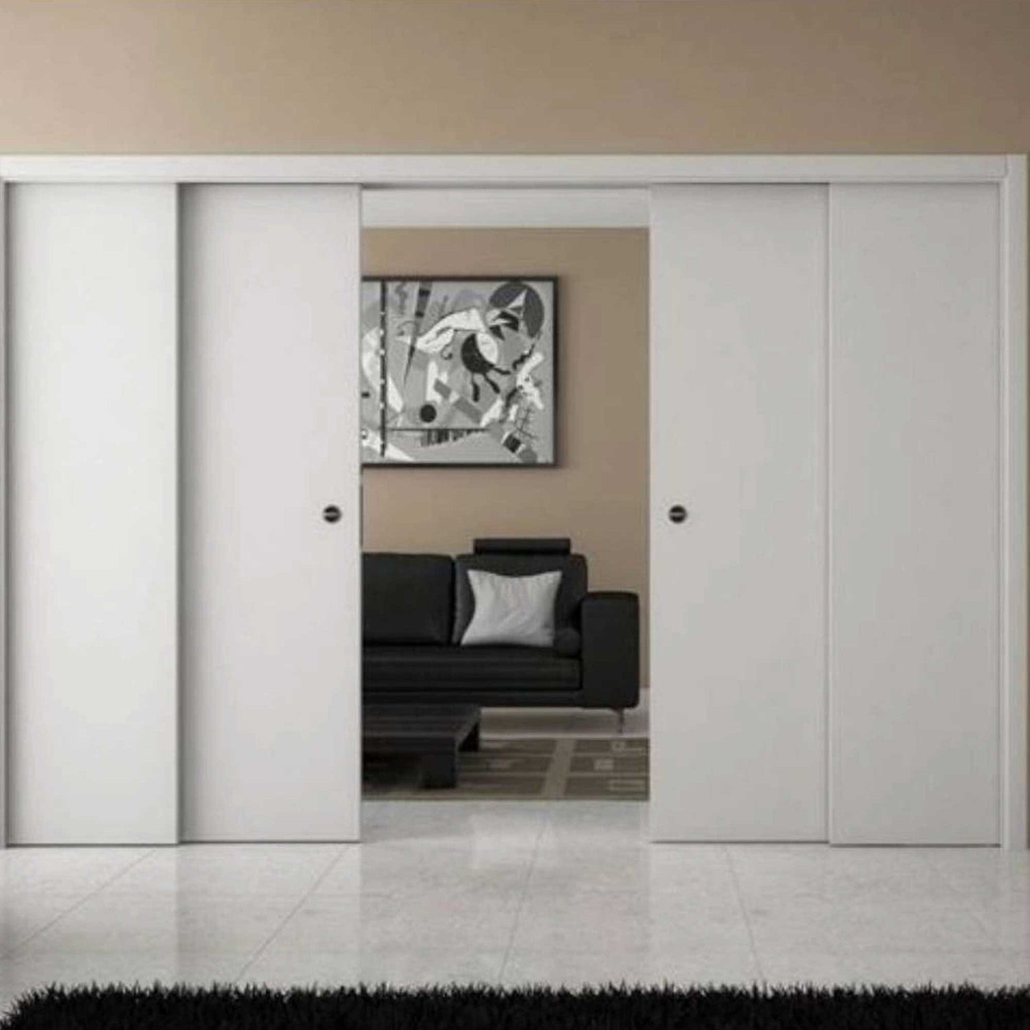 The Counterframe Scrigno Gold Granluce Double Door Plasterboard 190mm H2100 is designed for those who want to optimize large spaces and create environments with great visual impact. This innovative solution allows the disappearance of two parallel sliding doors, connected to each other by a drag system, ensuring smooth opening and a clean design. Perfect for installations on internal plasterboard partition walls, offers the ultimate in functionality and style.