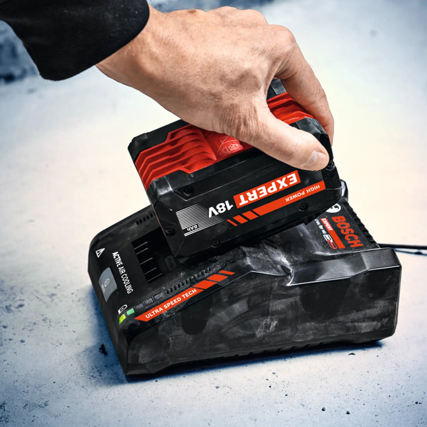 Starter Set Bosch Expert EXBA18V-80 18V 8Ah con 2 batterie e caricabatterie ultra-rapido. Autonomia estrema e ricarica in 39 minuti per massima produttività.