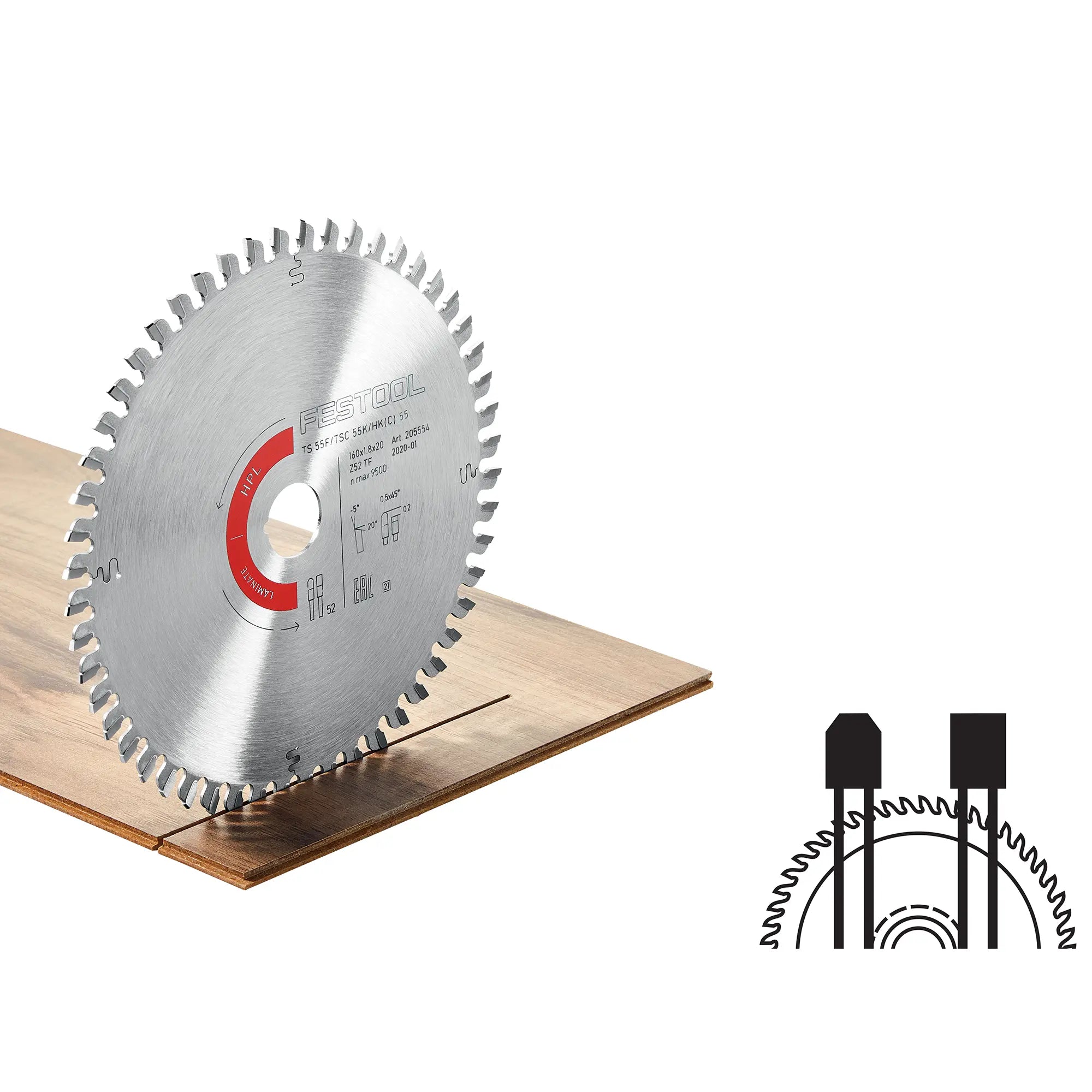 Lame en stratifié HPL Festool HW 160x1,8x20 TF52 – Précision et résistance pour des coupes parfaites