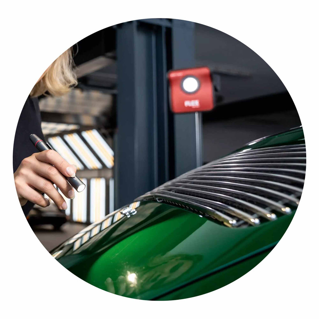 Là Lampe de poche à LED Flex SF 150-P Il est parfait pour ceux qui recherchent un éclairage précis et réglable pour vérifier l’état des surfaces. Avec son faisceau lumineux réglable, il est idéal pour les professionnels de l'automobile, les peintres et tous ceux qui ont besoin d'examiner des détails très fins sur des surfaces critiques. Sa compacité et sa longue durée de vie en font un outil pratique et fiable pour travailler dans n'importe quel environnement.