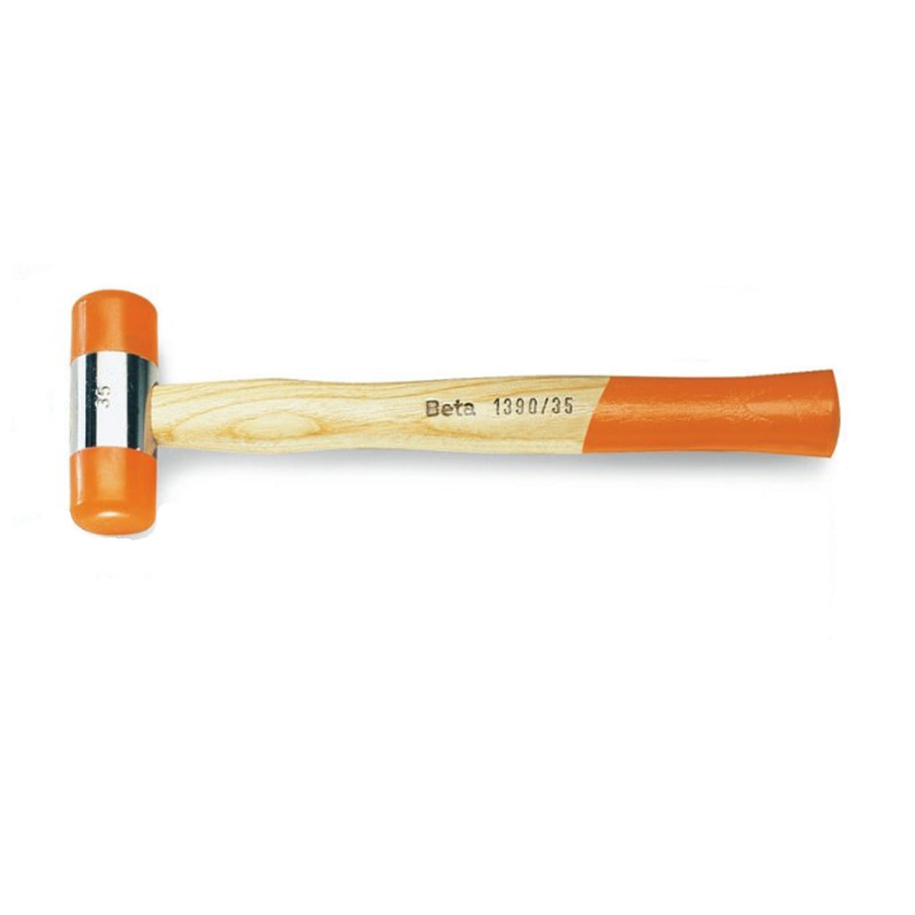 Maillet Beta 1390 avec fouets en plastique interchangeables et manche en bois, léger et facile à manipuler.