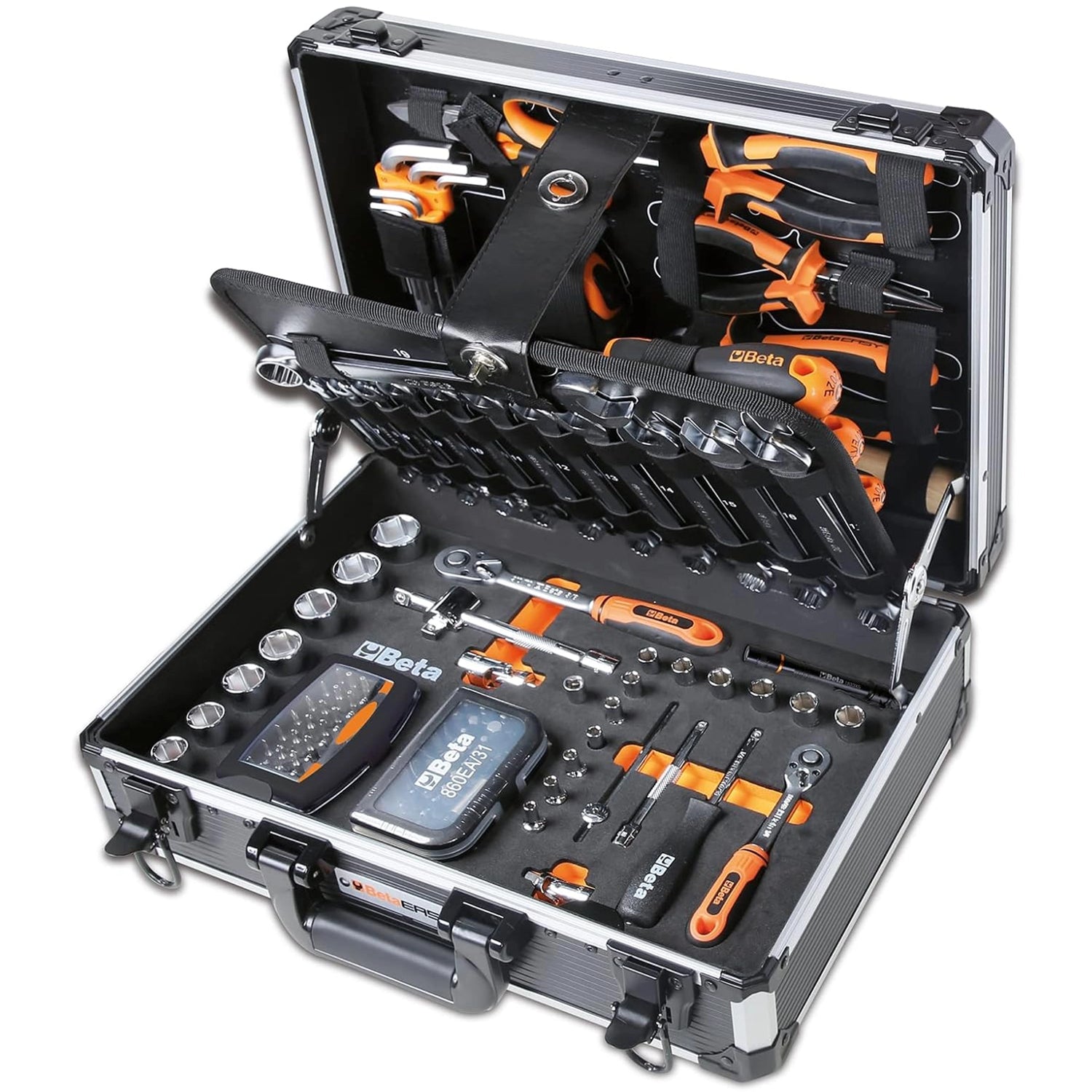 Mallette à outils Beta 2054E avec 100 ou 123 outils, pour l'entretien général. Plateau en EVA souple inclus. Livré avec le kit 860EA/31.