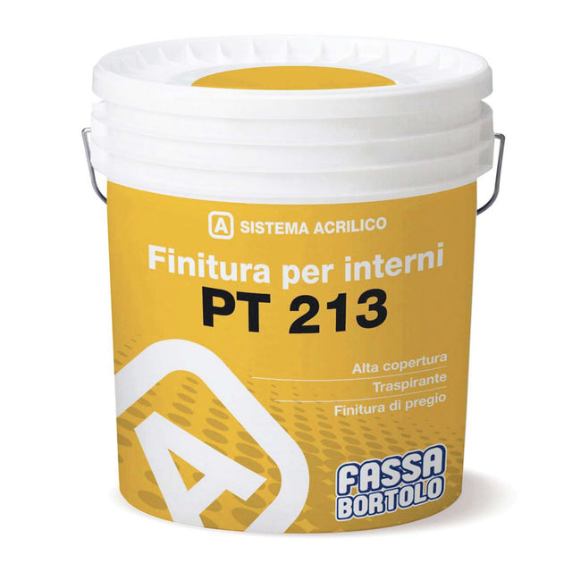 PT 213 est une peinture intérieure à l'eau à base de copolymères acryliques, d'agrégats sélectionnés, de dioxyde de titane, de pigments et d'additifs spécifiques pour améliorer son applicabilité et sa dilatation.