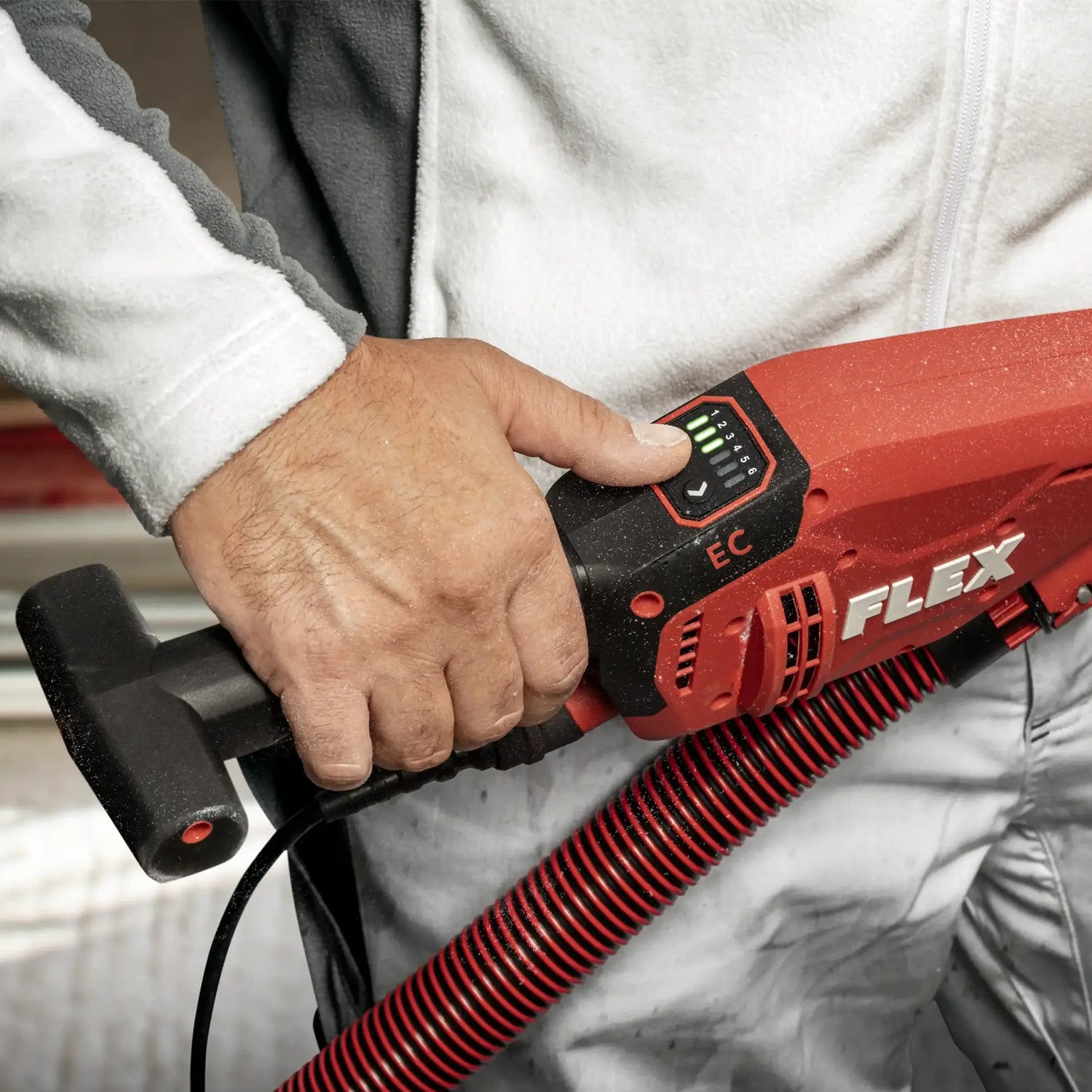 Le Flex La ponceuse GE 6 R-EC est utilisée pour le ponçage professionnel des plaques de plâtre, du plâtre et de la maçonnerie sur les murs et les plafonds, permettant un travail précis et uniforme. Associée à l'aspirateur VCE 33 M AC, elle garantit… contrôle efficace de la poussière et un environnement de travail plus sûr et plus ordonné.