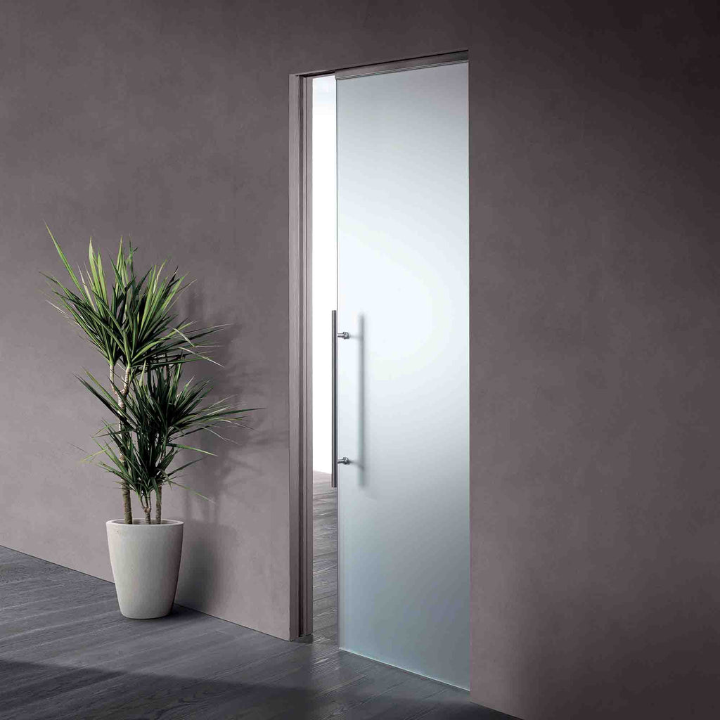 Porte coulissante Scrigno Air fil mural, ligne essential, pour rendre l'espace de vie exclusif et qui représentent le summum de l'innovation dans le monde du verre.