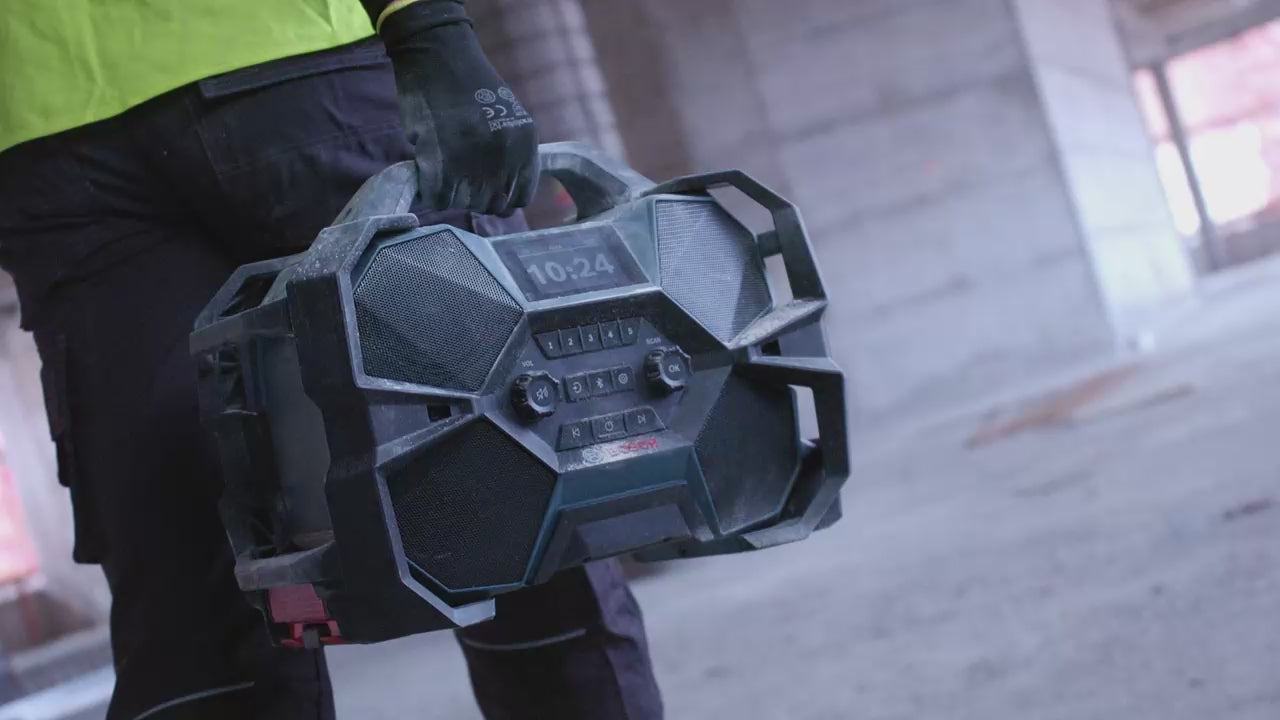 Il permet d'écouter de la musique et les actualités sur le chantier ou dans l'atelier via la radio DAB+ et FM ou une connexion Bluetooth et AUX, améliorant ainsi le confort de travail et la productivité quotidienne. écoute de qualité.