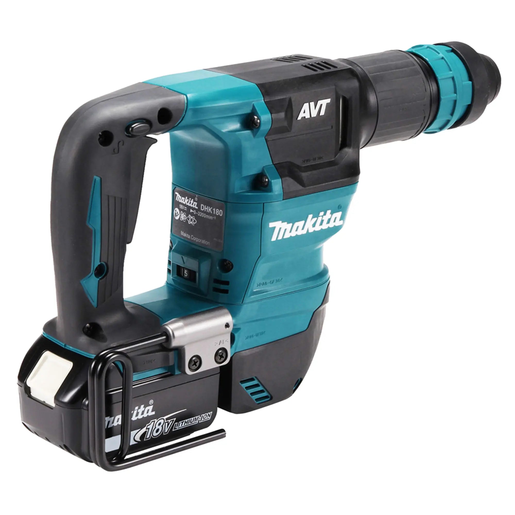 Le tailleur de pierre Makita DHK180RTJ 18V 5Ah conception compacte et légère avec moteur sans balais pour des performances élevées avec système anti-vibration AVT pour le burinage et le taraudage. La machine utilise des burins avec accessoire SDS-Plus.